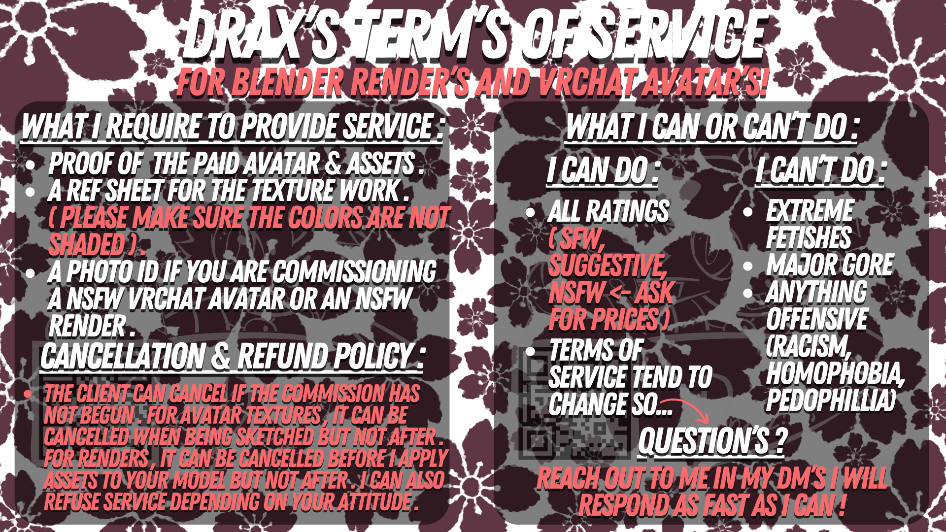 Welcome to my website! This is where you can find my information, check the bottom for my Commission Information & Photo/Animation Gallery! ℹ️If you have any questions please DM me!Discord: Drax.vr